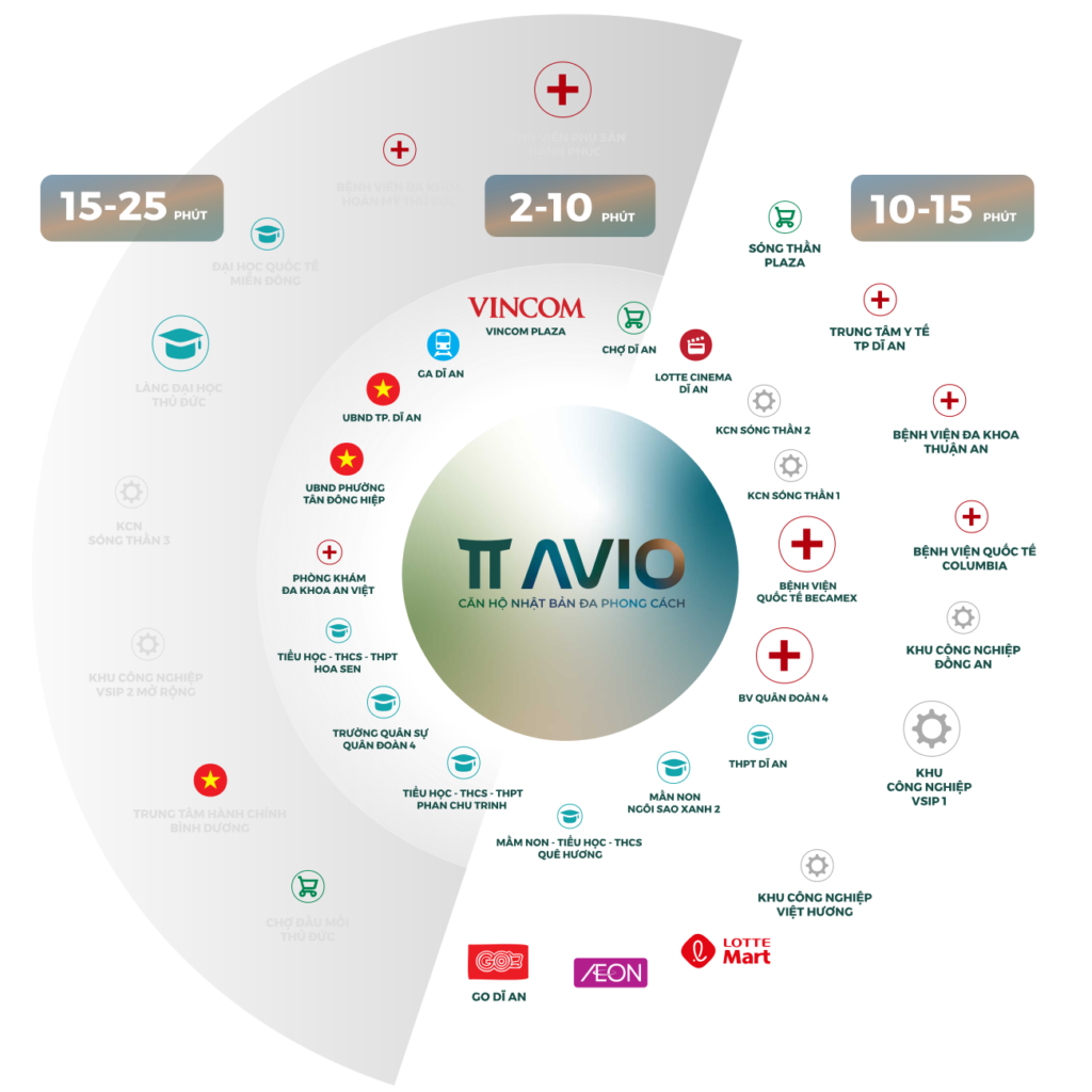 Với vị trí trung tâm thành phố Dĩ An, TT AVIO không chỉ mang lại sự thuận tiện trong việc di chuyển mà còn sở hữu hệ thống tiện ích đồng bộ, hoàn hảo cho một cuộc sống hiện đại. Cư dân chỉ mất vài phút để tiếp cận các tiện ích ngoại khu chất lượng, giúp nâng cao trải nghiệm sống và tận hưởng cuộc sống tiện nghi trọn vẹn.